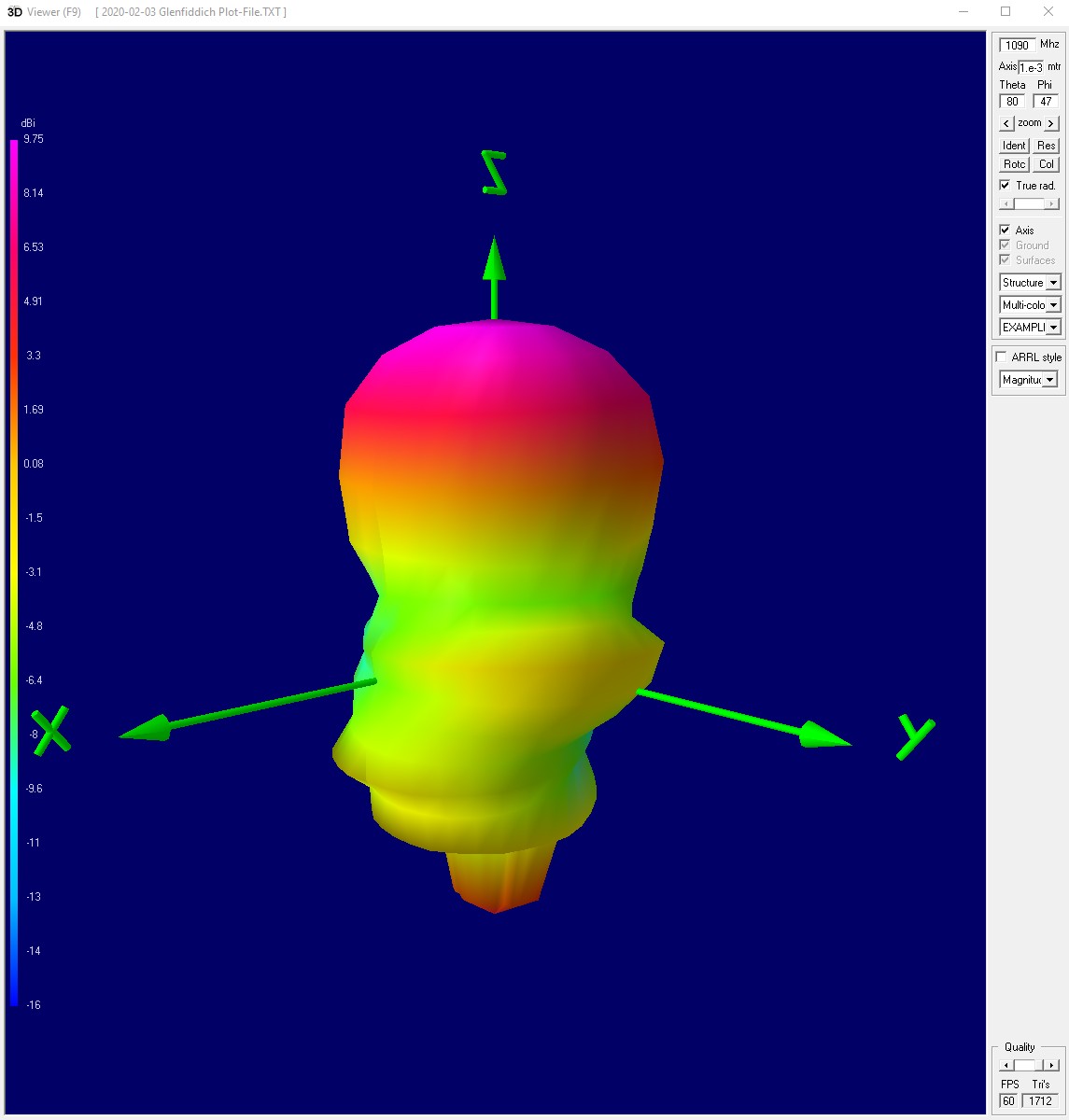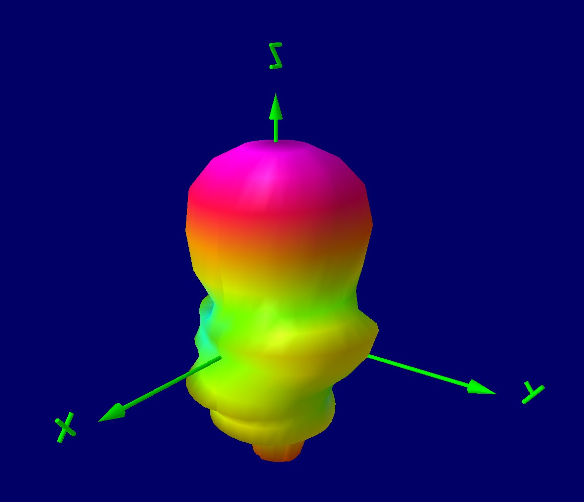 Scotch Bottle Helical Antenna 3D Spherical Gain Pattern 1090 MHz